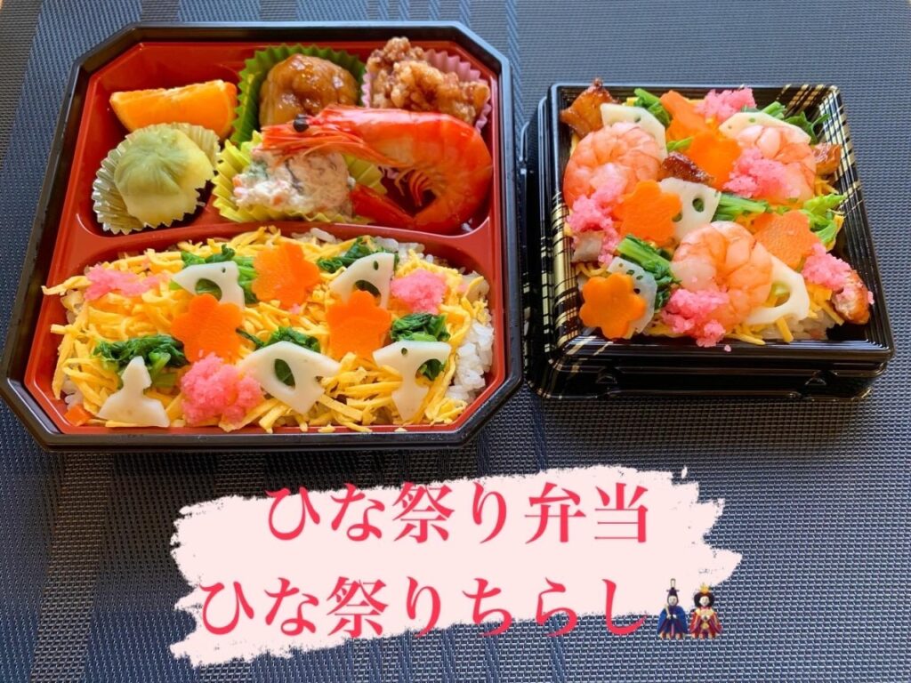 今日から2日間限定【ひな祭り弁当】と【ひな祭りちらし寿司】ご用意できました☺️