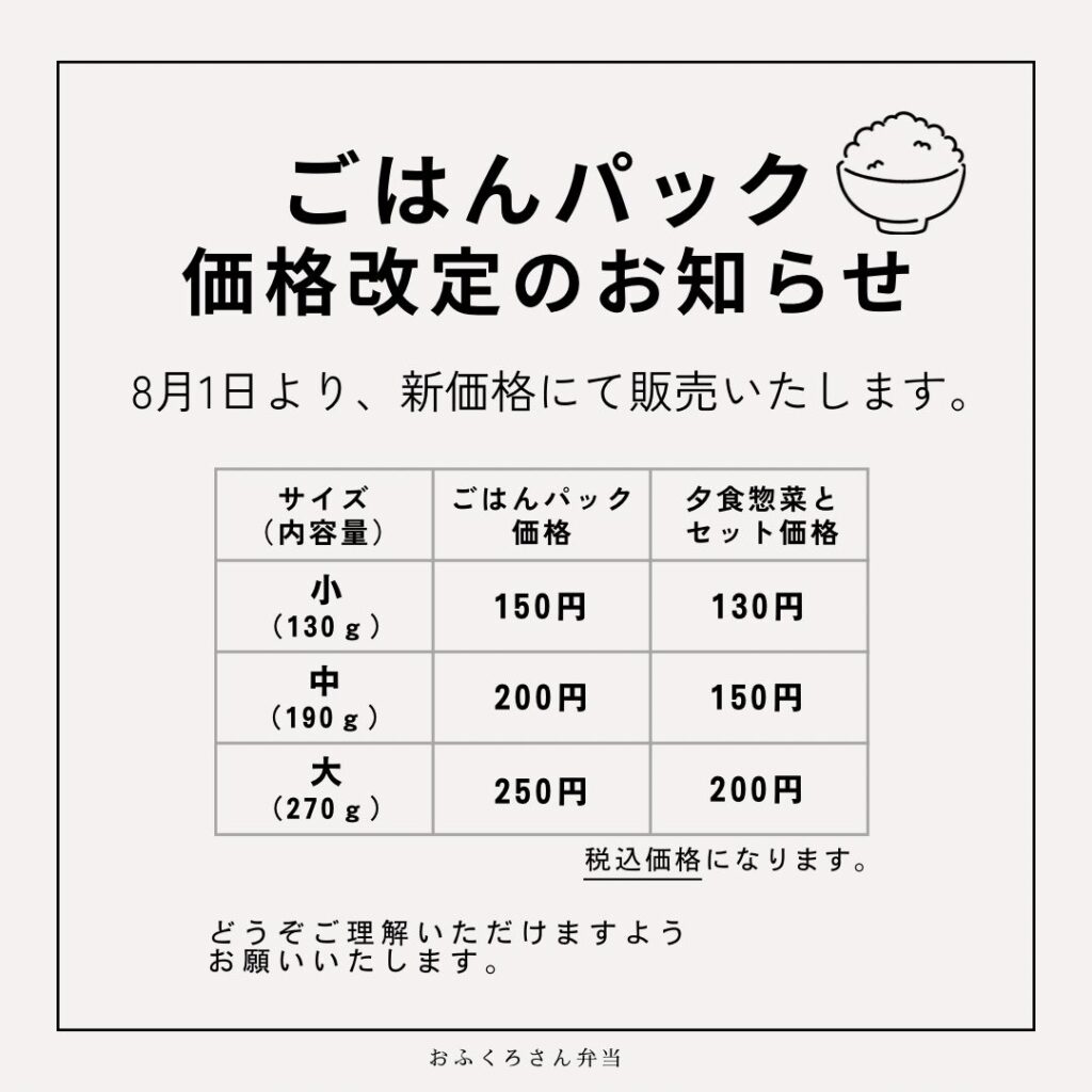 【ごはんパック価格改定のお知らせ】