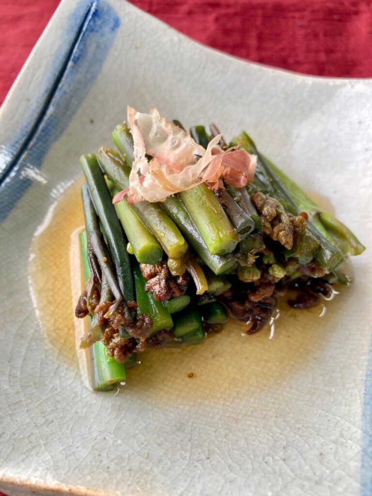こんにちは☀今日は店頭にて販売の季節メニュー【わらびのお浸し】のご紹介です。鈴鹿里山より採れたてのわらびです。わらび本来の味を味わって頂けるよう、シンプルにお出汁につけたお浸しです。新鮮なわらびの、シャキッとした歯応えと、お出汁の味が贅沢に味わって頂ける一品です☺️