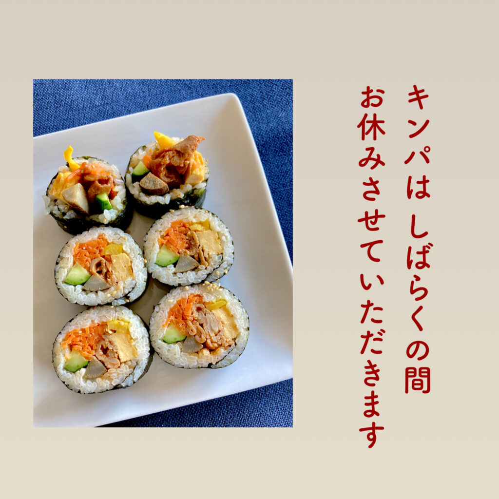 店頭にて曜日限定でご用意していました【キンパ】ですが、しばらくの間お休みさせていただきます。