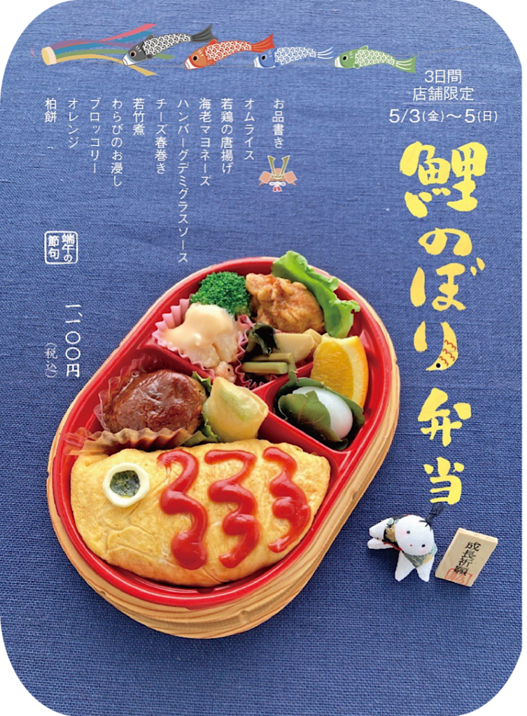 今日は5月3日(金)〜5日(日)の3日間、店頭限定【鯉のぼり弁当】のご紹介です。